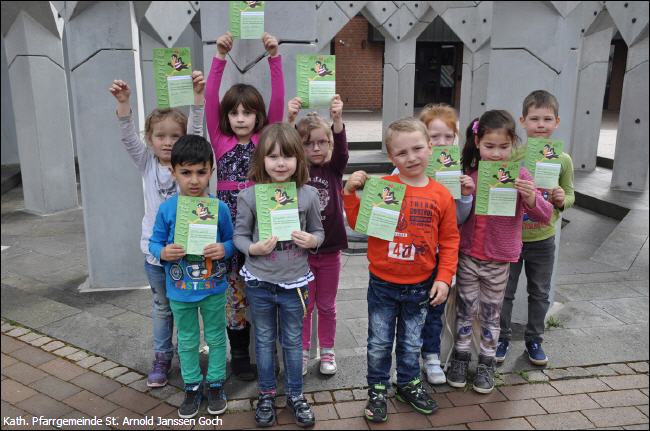 erschrecken oder Albert, dem coolen Ganter, der seine Traumgans kennenlernen wollte. Beim anschließenden Ausmalen wurden die Eindrücke vertieft und die Feinmotorik geschult. Dass es in der Bücherei Antworten auf viele Wissensfragen gibt, erfuhren die Kinder durch das Vorstellen einiger Sachbücher aus verschiedenen Wissensgebieten, z.B. Natur, Technik, Basteln oder der Tierwelt. Zu dieser Stunde waren auch die liebsten Kuscheltiere zu Gast in der Bücherei. Nach dem Ausleihen eines Buches und dem Abschlusslied „Viele bunte Bücher aus der Bücherei …“ marschierten dann alle fröhlich winkend mit dem bib-fit-Rucksack wieder in ihren Kindergarten zurück Auch nach dem Erhalt des Bibliotheks-Führerscheins werden die Kindergärten die Bücherei Liebfrauen besuchen und Bücher ausleihen. Neue Leser/innen sind weiterhin an der Kalkarer Str. 28 jederzeit herzlich willkommen. Die Ausleihe ist kostenlos, die Öffnungszeiten sind dienstags und freitags von 16.00 bis 18 Uhr.