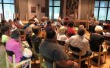 Angenehm überrascht waren die zahlreichen Besucher, die zur von der Bücherei Liebfrauen organisierten Lesung ins Pfarrheim Arnold-Janssen, Goch, gekommen waren. Der Steyler Pater Devis Don Wadin aus St. Augustin hatte nicht nur sein Buch an diesem Abend mitgebracht, sondern auch einige stimmgewaltige indonesische Freunde. Begleitet auf der Gitarre u.a. vom Gocher Kaplan Agateus Ngala und beim Gesang vom Gocher Krankenhauspfarrer Willi Jacobs, der viele Jahre auf der indonesischen Insel Timor gelebt hat, trug die Gruppe den Besuchern einige traditionelle Lieder aus der Heimat vor. „Musik kennt keine Grenzen“, der Abend begann schon in angenehmer und lockerer Atmosphäre, bevor Pater Devis mit anschaulichen Bildern Landschaft und Kultur einiger indonesischer Inseln und sich selber vorstellte. Beeindruckende, aufbauende Texte und Gedanken aus seinem Buch animierten viele Gäste, sein Buch „Eine Kokosnuss im weiten Meer“ zu kaufen und mit dem Erlös und zahlreichen Spenden die Arbeit der Steyler Mission zu unterstützen. Ein herzliches Dankeschön von Pater Devis beendete den rundum gelungenen Abend!