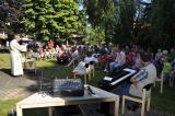 „Herr wir bitten komm und segne uns…“ nach diesem Lied endete der Gottesdienst mit dem Segen für Mensch und Tier. Alle ca. 25 mitgebrachten Haustiere (überwiegend Hunde, Meerschweinchen, Kaninchen, Agamen und ein Huhn) hatten sich wieder erstaunlich ruhig verhalten! Bereit stehende Näpfe mit Wasser für die Tiere und kalte Getränke für die menschlichen Besucher ließen noch etwas Zeit für Gespräche bzw. zum Beschnuppern für die Tiere.
